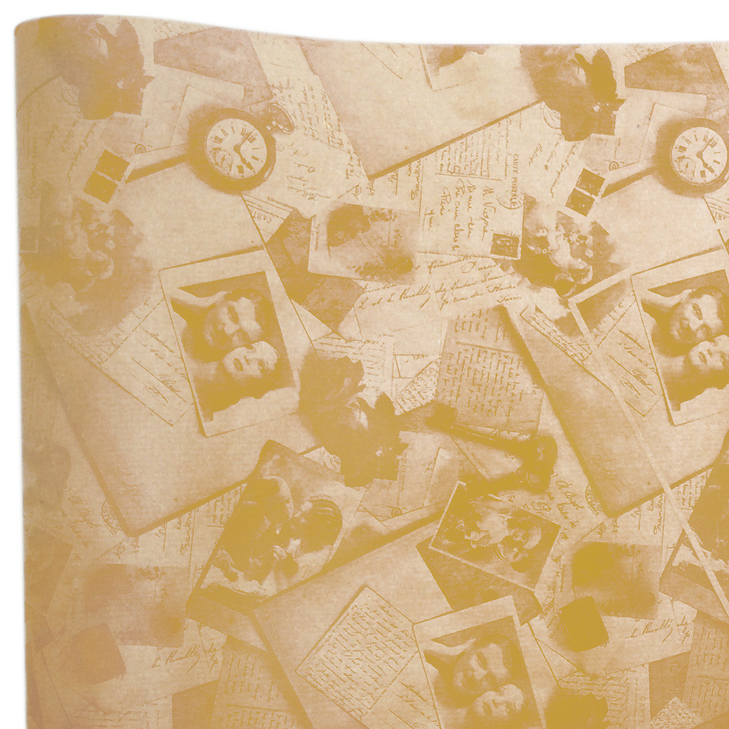 Подарунковий папір ретро "Фото", "годинник"(172) золоті на крафте
